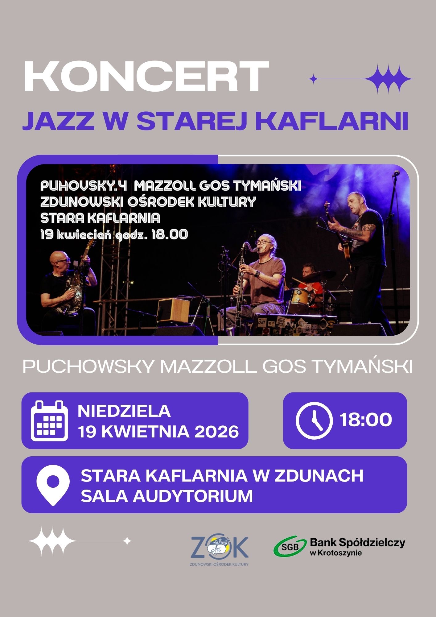 Koncert PUCHOWSKY MAZZOLL GOS TYMAŃSKI w Starej Kaflarni w Zdunach ❗